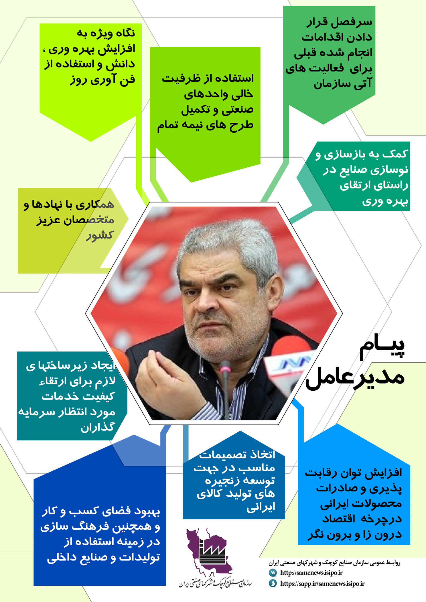 اینفوگرافی/پیام مدیرعامل سازمان صنایع کوچک و شهرکهای صنعتی ایران