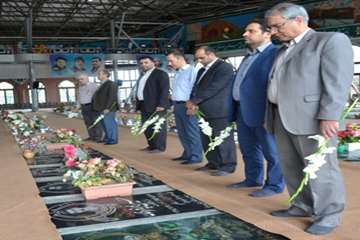 حضور کارکنان شرکت شهرک های صنعتی گیلان در گلزار شهدا به مناسبت 21 مرداد روز حمایت از صنایع کوچک
