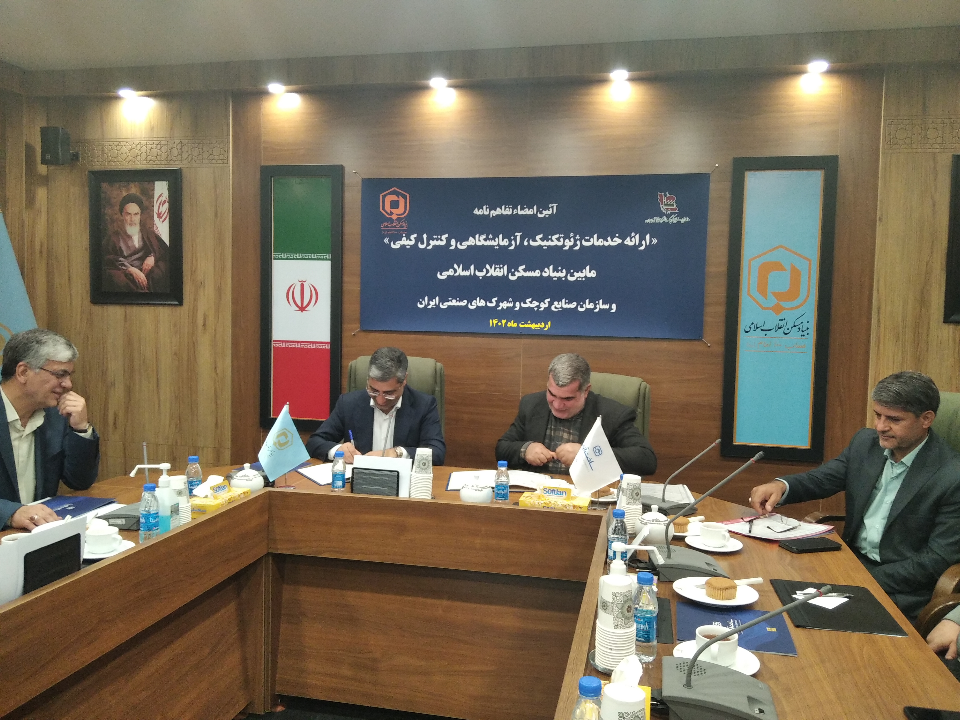 تفاهم نامه ارائه خدمات ژئوتکنیک، آزمایشگاهی و کنترل کیفی میان سازمان صنایع کوچک و شهرکهای صنعتی ایران و بنیاد مسکن انقلاب اسلامی امضاء و مبادله شد.
