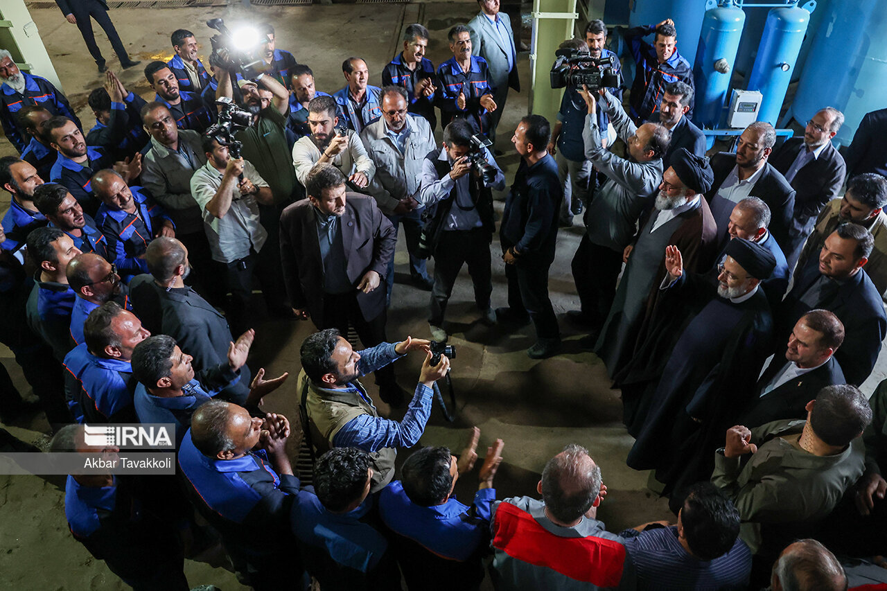 حجت الاسلام رئیسی همچنین در جریان این بازدید گفتگویی صمیمانه و بیواسطه با کارگران این کارخانه داشت و وضعیت کاری و معیشتی آنها را جویا شد.