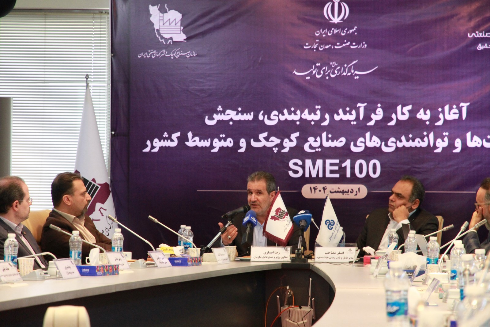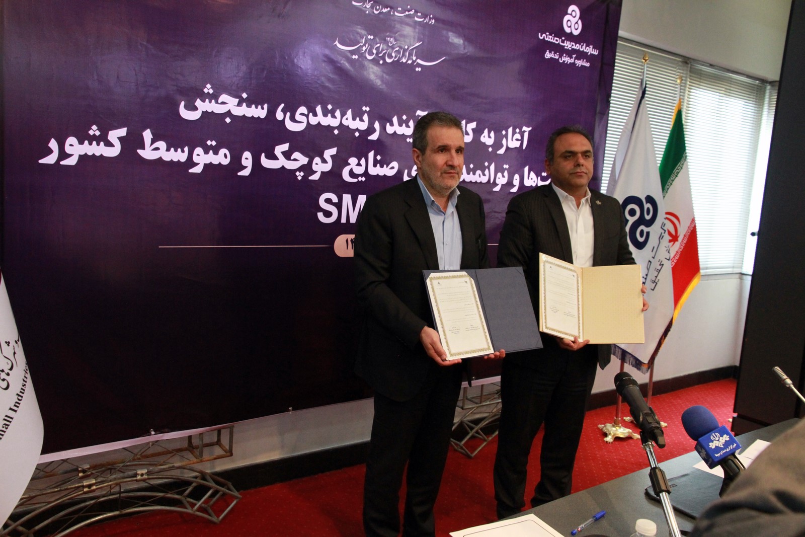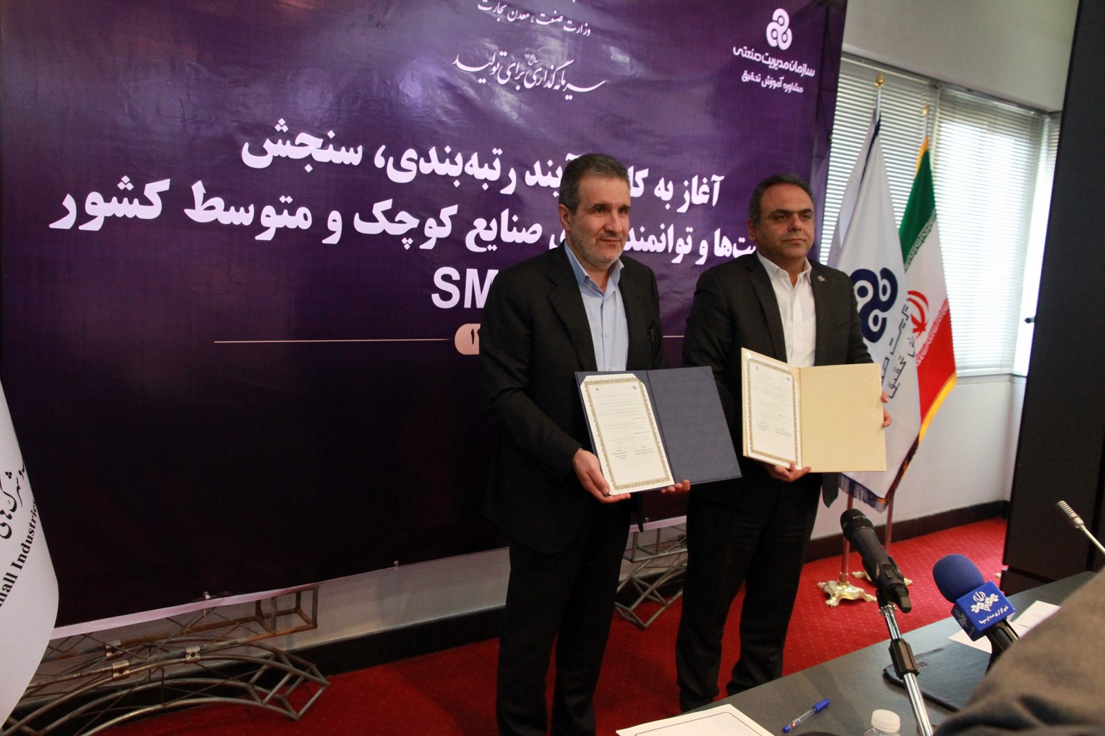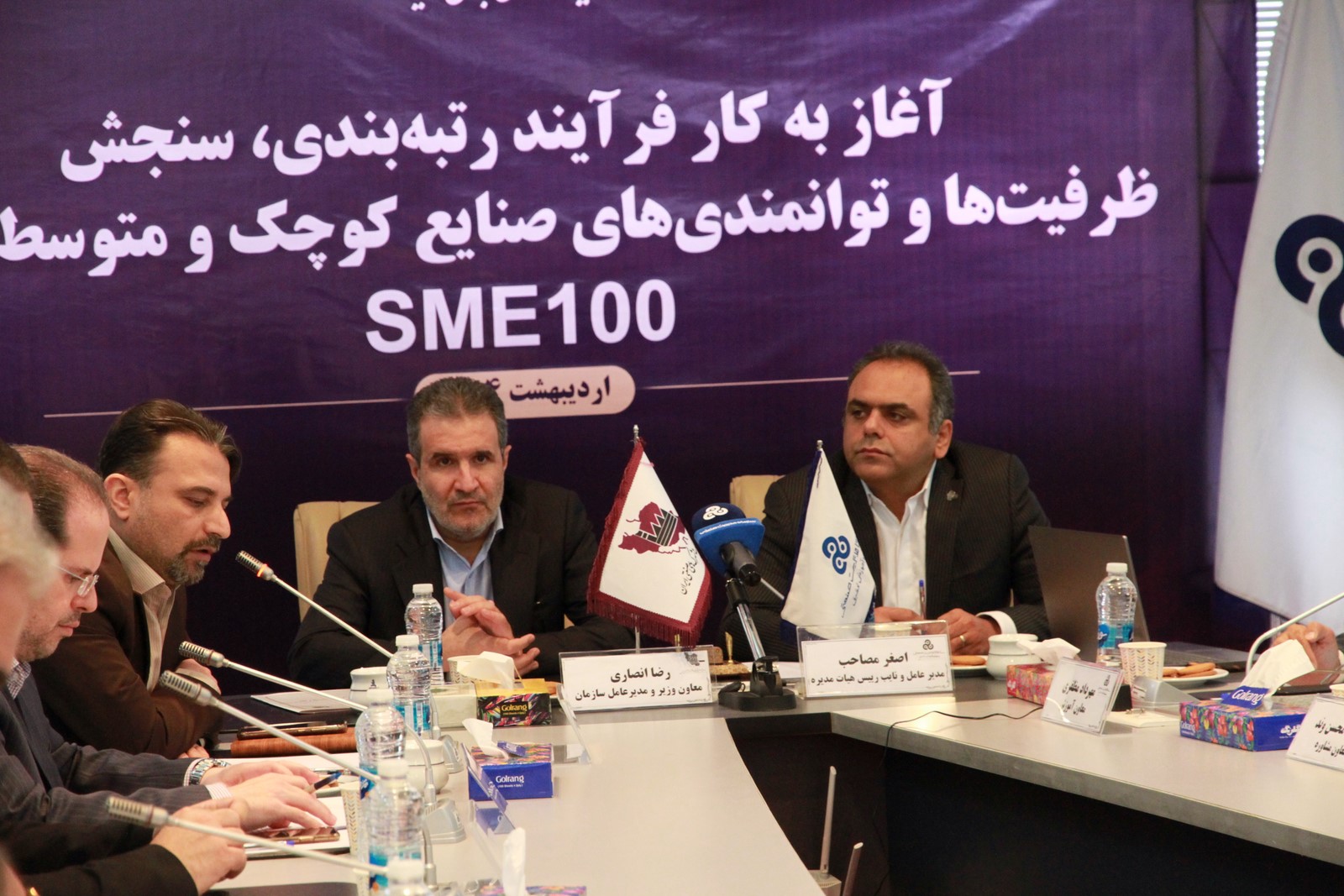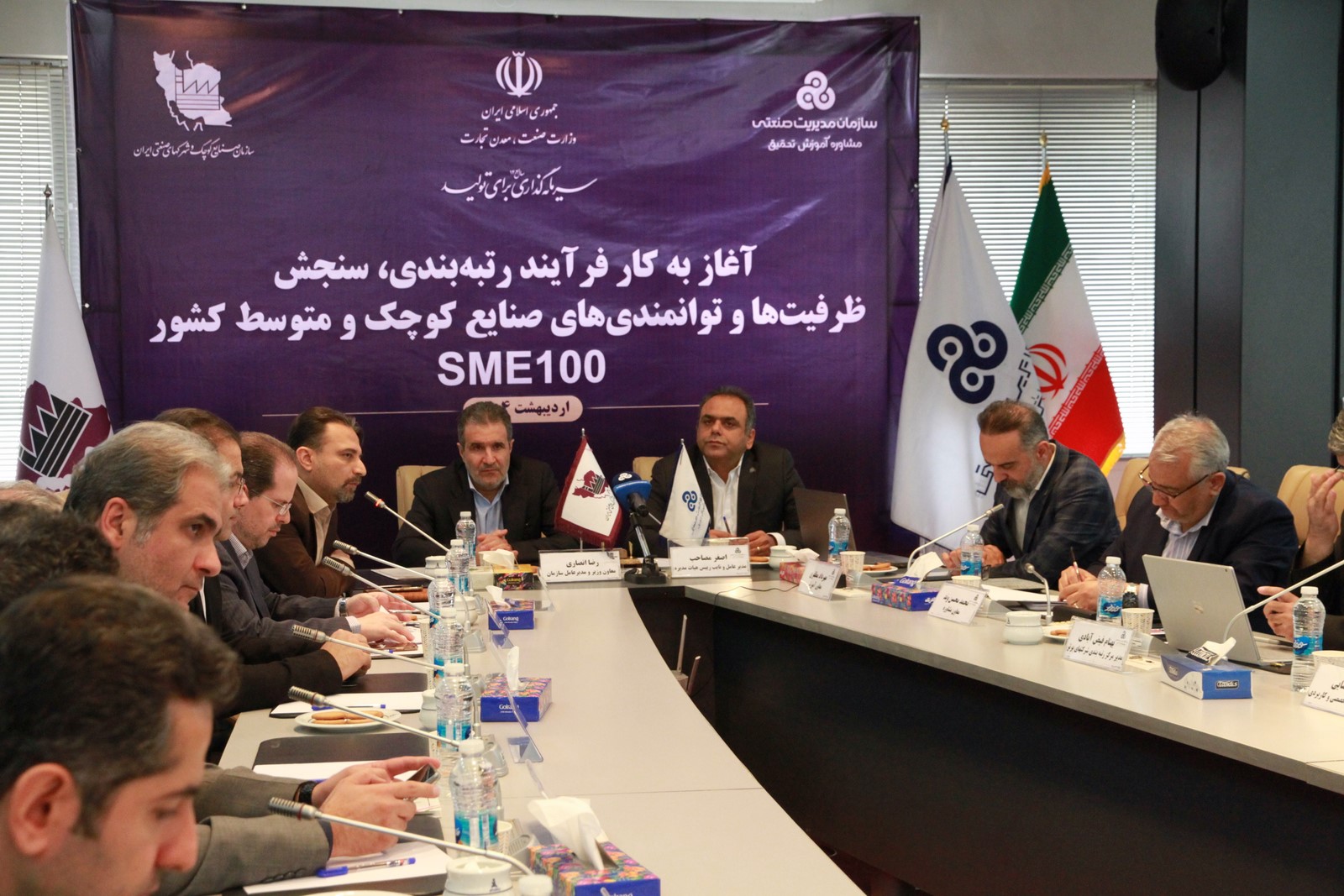 فرآیند رتبه بندی و سنجش ظرفیتها و توانمندیهای صنایع کوچک کشور(SME100) برای اولین بار با امضای سند مشترک همکاری توسط «رضا انصاری» معاون وزیر صمت، رئیس هیأت مدیره و مدیرعامل سازمان صنایع کوچک و شهرکهای صنعتی ایران و «اصغر مصاحب» عضو هیأت مدیره و مدیرعامل سازمان مدیریت صنعتی ایران آغاز شد.
