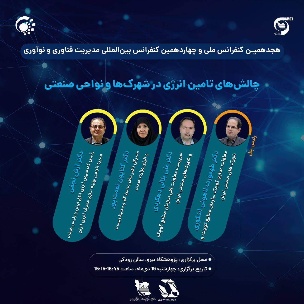 به گزارش روابط عمومی ایزیپو(سازمان صنایع کوچک و شهرک‌های صنعتی ایران)، نخستین پنل تخصصی با موضوع «آسیب‌شناسی ناترازی انرژی در شهرک‌های صنعتی» در هجدهمین کنفرانس ملی و چهاردهمین کنفرانس بین‌المللی مدیریت فناوری و نوآوری در پژوهشگاه نیرو برگزار شد.