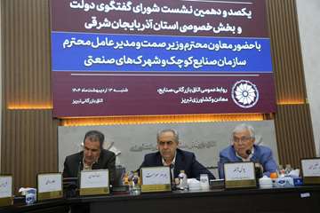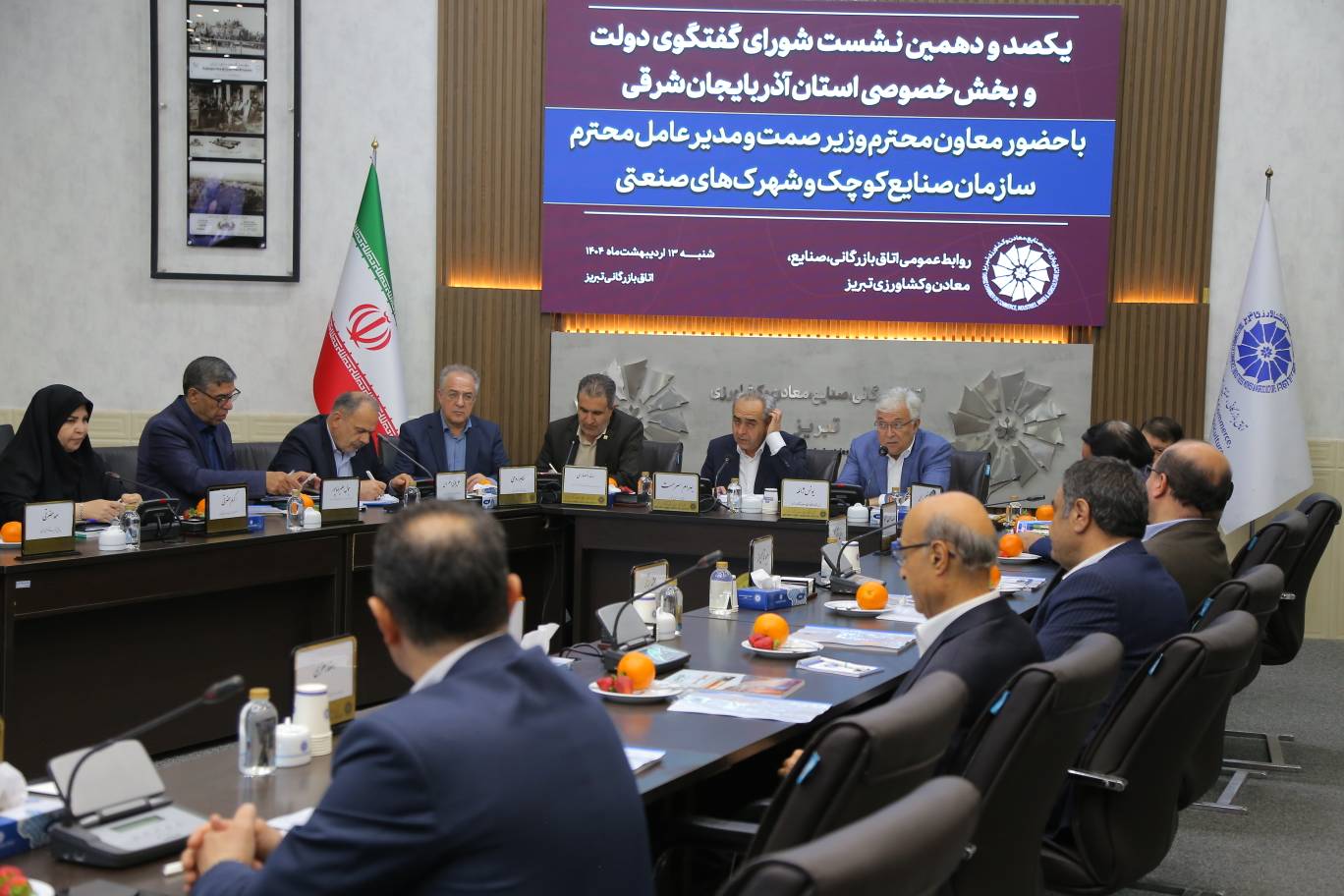 یکصد و دهمین نشست شورای گفتگوی دولت و بخش خصوصی استان آذربایجان‌شرقی با حضور معاون وزیر صمت و مدیرعامل سازمان صنایع کوچک و شهرک های صنعتی ایران برگزار شد.