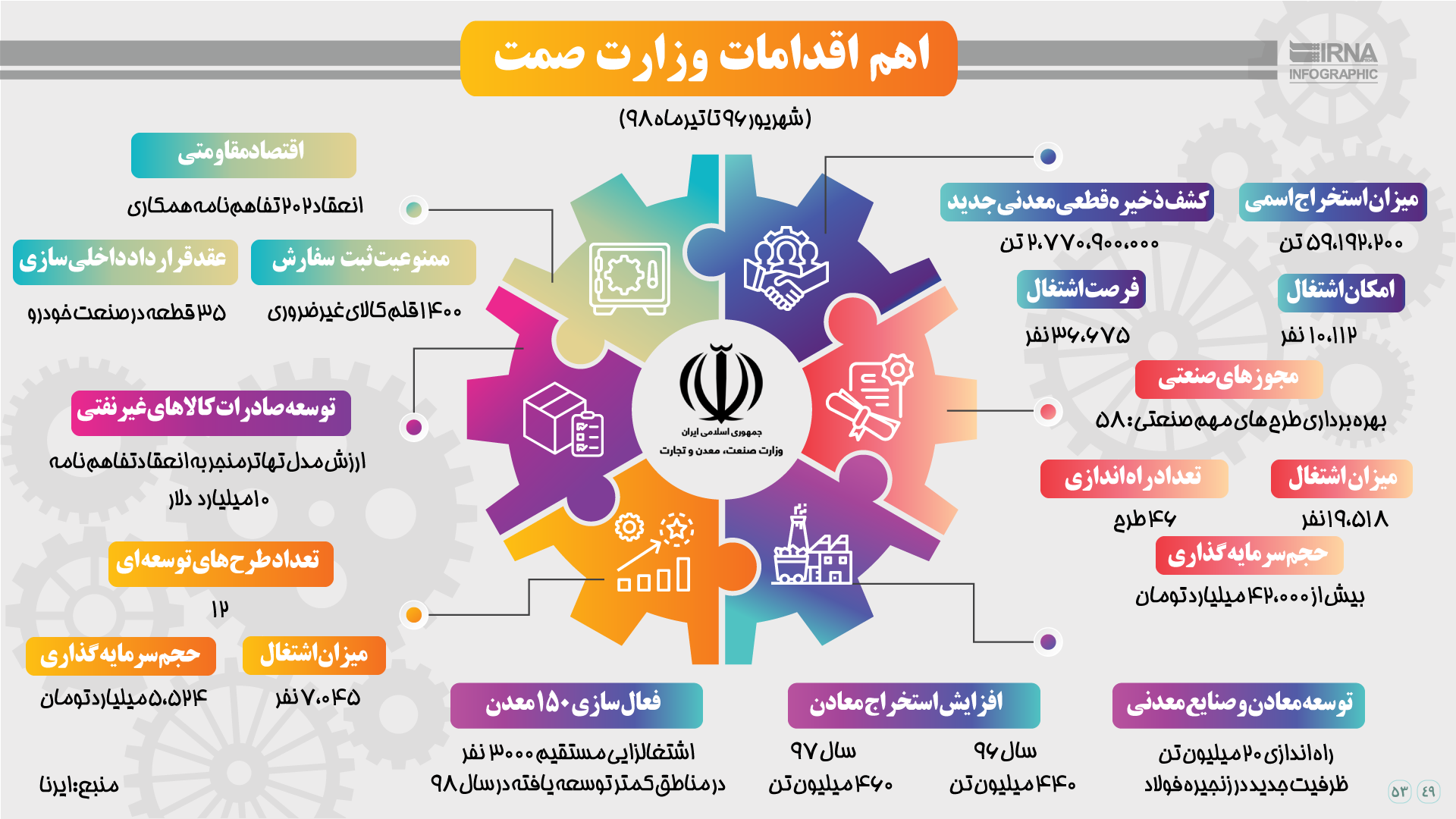 اهم اقدامات وزارت صنعت، معدن و تجارت
