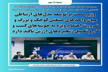 سرپرست سازمان صنایع کوچک و شهرک‌های صنعتی ایران در نشست تخصصی ارتباط موثر میان صنایع بزرگ و کوچک مطرح کرد:
