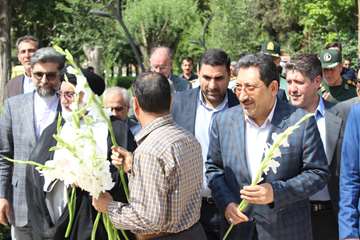 تجدید میثاق وزیر صمت و معاونین وزارتخانه با آرمانهای والای شهدا در گلزار شهدای ایوان