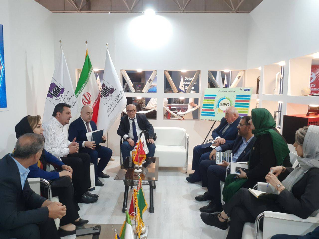 در جریان بازدید از نمایشگاه اکسپو ۲۰۲۴ ، رییس اتاق بازرگانی عراق، رئیس اتحادیه سرمایهگذاران بین المللی کشور گرجستان، هیات تجاری کشور روسیه و رییس اتاق بازرگانی کشور ترکمنستان با حضور در غرفه شرکت شهرکهای صنعتی استان تهران با فرشاد مقیمی، معاون وزیر صمت و مدیرعامل سازمان صنایع کوچک و شهرکهای صنعتی ایران دیدار و گفتگو کردند.