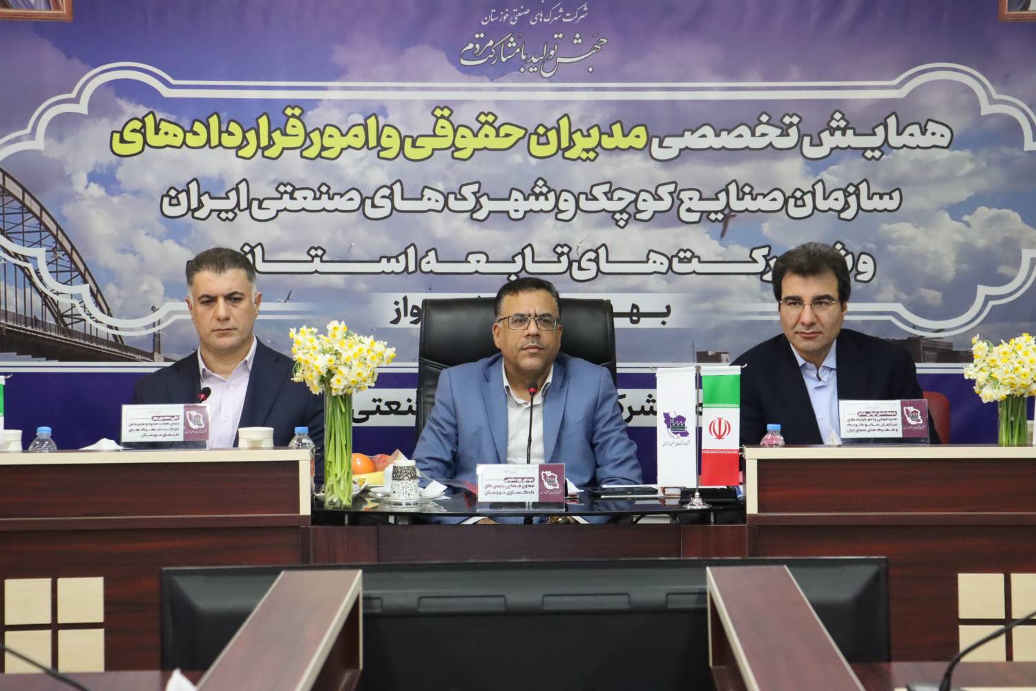 مدیر عامل شرکت شهرک های صنعتی خوزستان نیز در همایش تخصصی مدیران و مشاوران حقوقی و امور قراردادهای سازمان صنایع کوچک و شهرک های صنعتی سراسر کشور که با حضور معاون دادگستری خوزستان، مدیر کل صمت در سالن اجتماعات شرکت شهرک صنعتی برگزار شد با بیان مطلب فوق به ضرورت تعیین تکلیف اراضی واگذار شده اشاره کرد و گفت: اولویت اصلی واگذاری اراضی در شهرک های صنعتی راه اندازی کسب و کار و ایجاد کارگاه های صنعتی و تولیدی است اما در سال های قبل بیش از 504 قرارداد واگذاری زمین منعقد شد که اراضی مذکور راکد مانده و کسب کاری در آنان ایجاد نشده است.