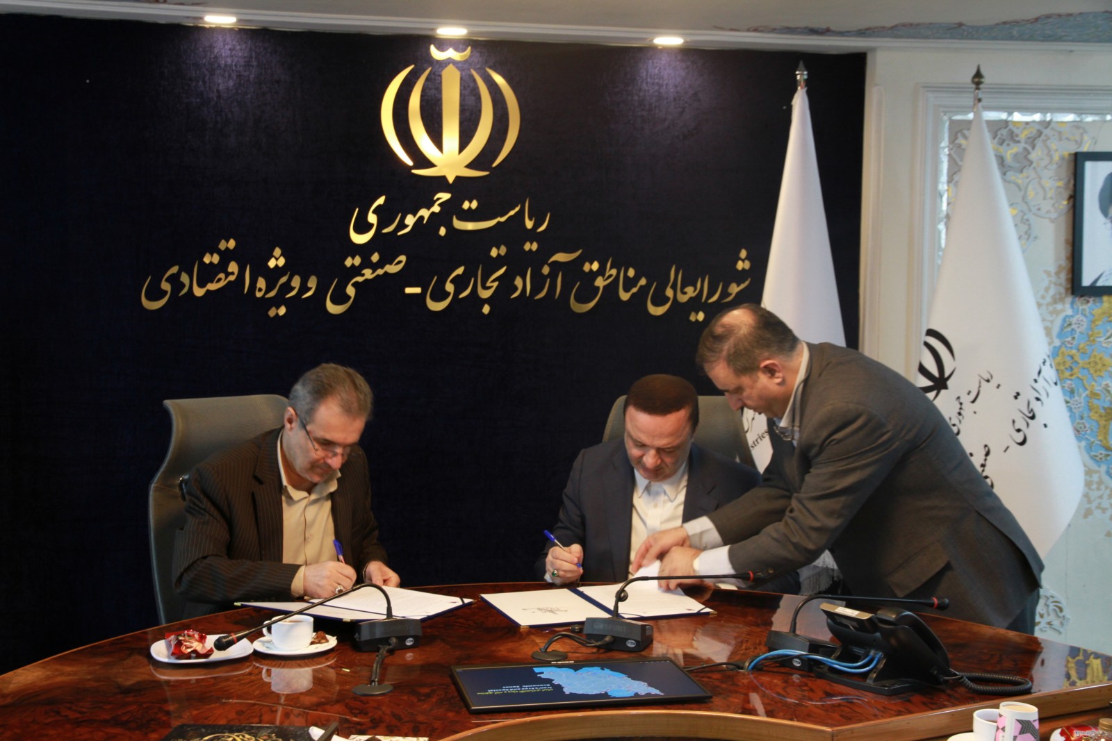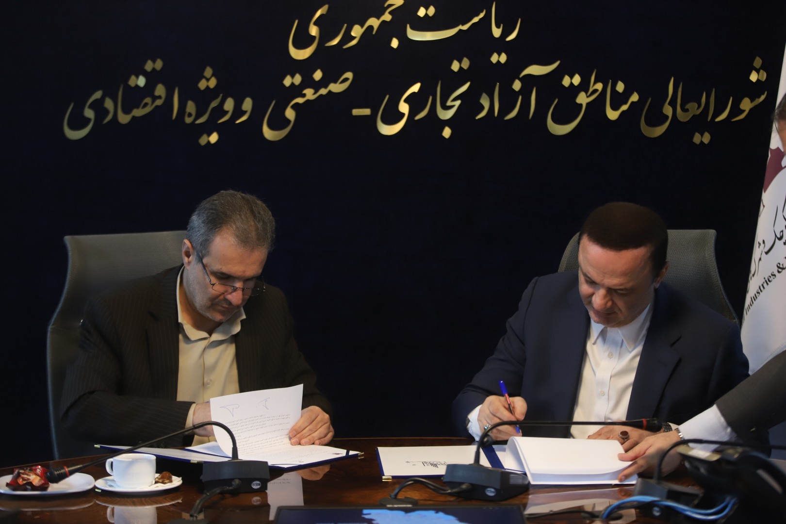 این تفاهم‌نامه طی مراسمی به امضای رضا مسرور دبیر شورای عالی مناطق آزاد تجاری ـ صنعتی و ویژه اقتصادی و رضا انصاری معاون وزیر صنعت، معدن و تجارت، رئیس هیأت‌مدیره و مدیرعامل سازمان صنایع کوچک و شهرک‌های صنعتی ایران رسید.