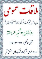 (بازخواني خبر) روز ملاقات عمومي مديرعامل شركت شهرك هاي صنعتي قم اعلام شد