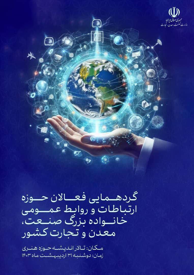 به گزارش روابط عمومی سازمان صنایع کوچک و شهرک‌های صنعتی ایران، گردهمایی فعالان حوزه ارتباطات و روابط عمومی خانواده بزرگ، صنعت، معدن و تجارت کشور با حضور فعالان این حوزه  برگزار می‌شود.