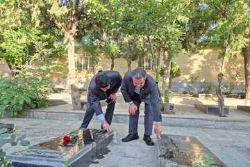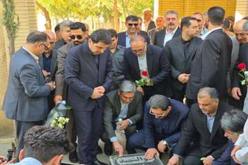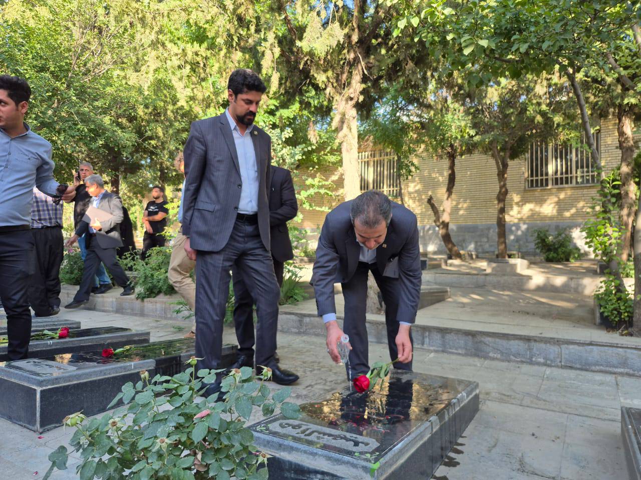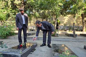 تجدید میثاق معاون وزیر صمت با آرمانهای والای شهدا در گزار شهدای سنندج در جریان سفر وزیر صمت به استان کردستان