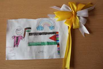در این دیدار که در جوی صمیمی صورت گرفت، فرزند کوچک شهید والامقام جبلی، یک نقاشی به عنوان یادگاری به معاون وزیر صمت هدیه داد.